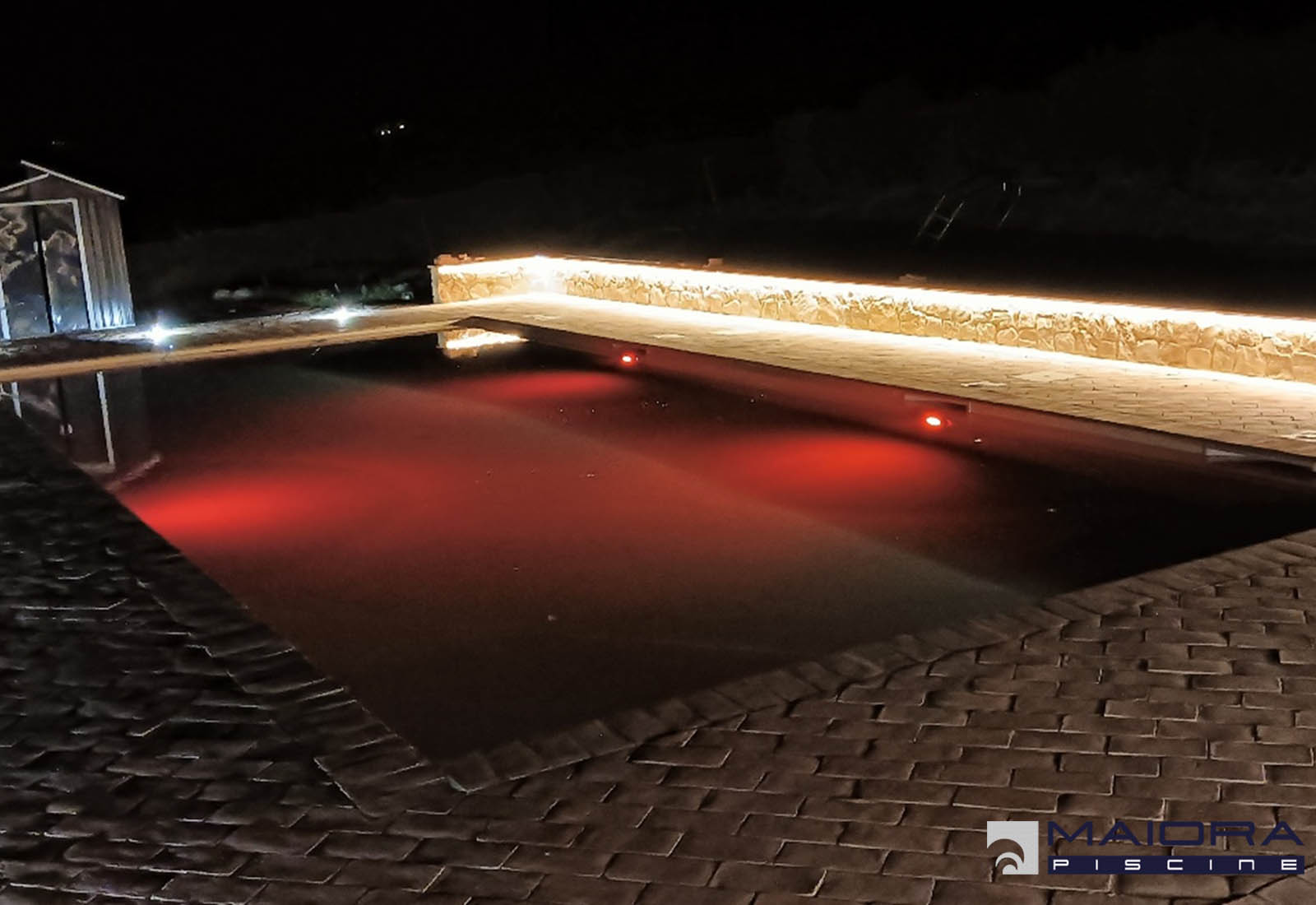 STRAMAZZO 8 X 4 CON SCALA E SPIAGGETTA Sebbene nella misura più richiesta (ml 8 x 4m) questa piscina mantiene un alto grado di personalizzazione grazie allo sfioro a stramazzo sul lato lungo e la scala laterale con spiaggetta. L’altezza di 1.40 ml è costante, le luci invece sono RGB e cambiano il loro colore...