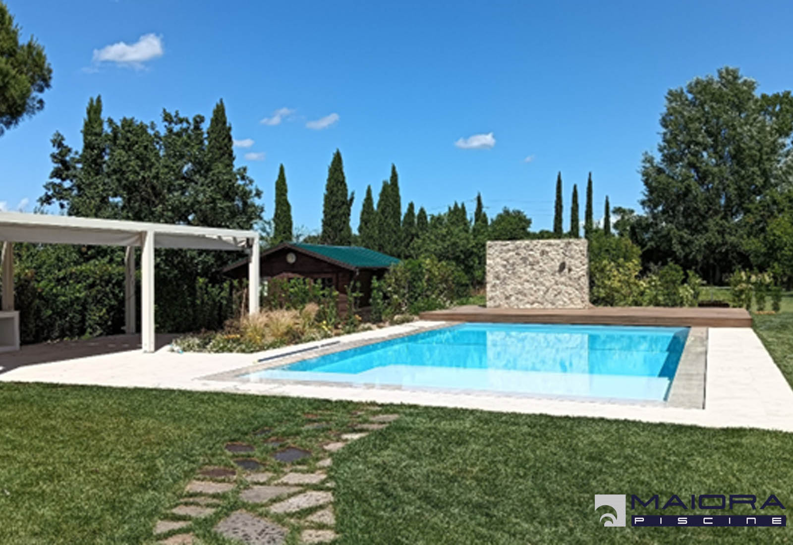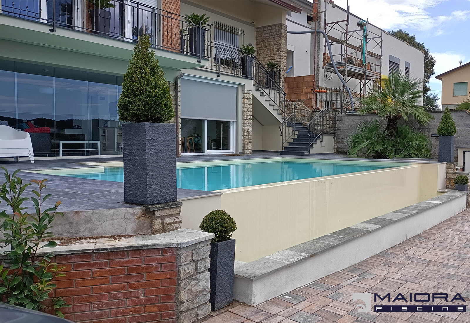 PERSONALIZZAZIONE Una piscina originale ed unica, completa di una cascata in acciaio, impianto a sale e regolatore di pH automatico. Pavimento in GRES con finitura a testa di toro. Piscina 6 x 12. La scala alla romana solitamente è posizionata sul lato corto della piscina, nulla vieta però di spostarla sul lato lungo e magari...