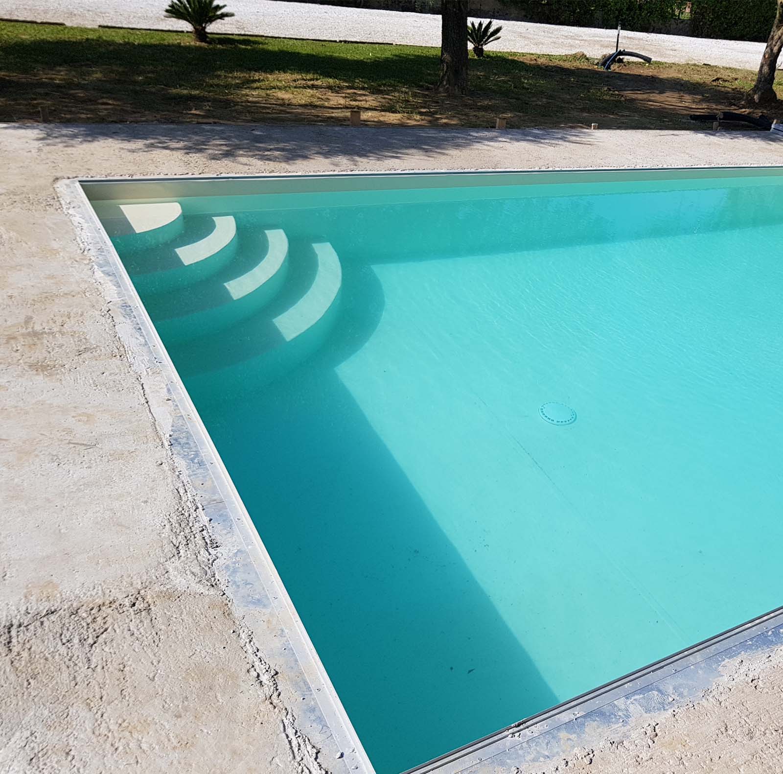 La Scala Romana è una delle opzioni più tradizionali per le scale d’ingresso esterne. Questa modalità, che si presenta con una mezza circonferenza di diametro minimo di 2 metri, può essere personalizzata in base alle dimensioni della piscina e alle preferenze degli utenti. Grazie alle modifiche nelle dimensioni dei gradini, è possibile creare aree di relax, sedute idromassaggio e molto altro. Va notato che, essendo esterna al perimetro, la Scala Romana aumenta le misure originali della piscina.