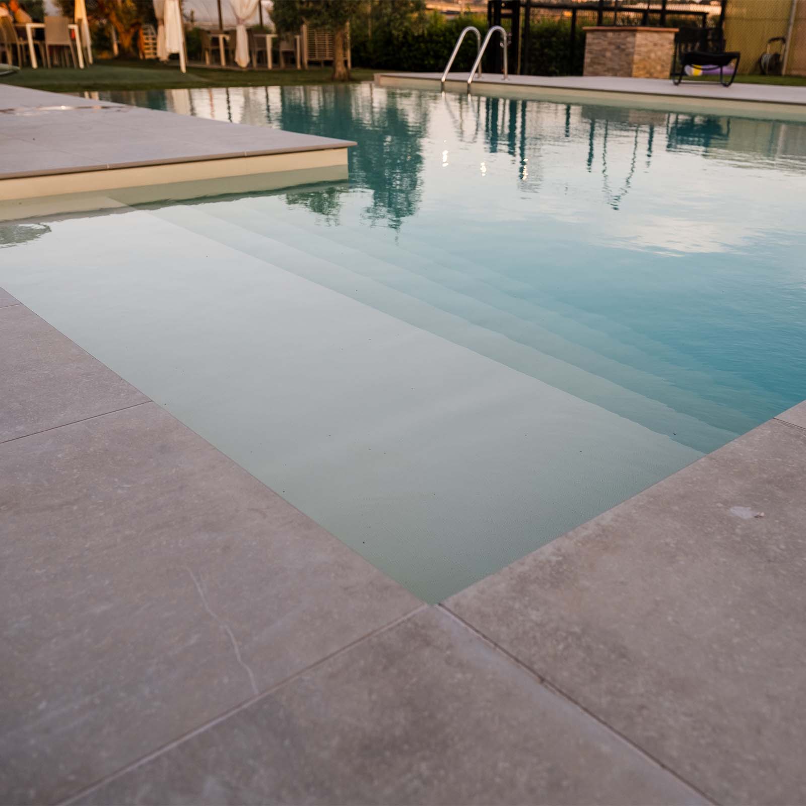 Le scale d’ingresso rappresentano un elemento cardine nella progettazione di una piscina. Queste strutture, oltre a garantire un sicuro e comodo accesso all’acqua, assicurano anche una via d’uscita per eventuali animali domestici. Inoltre, le scale d’ingresso creano angoli conviviali e zone relax, perfette per godere del sole e dell’acqua.