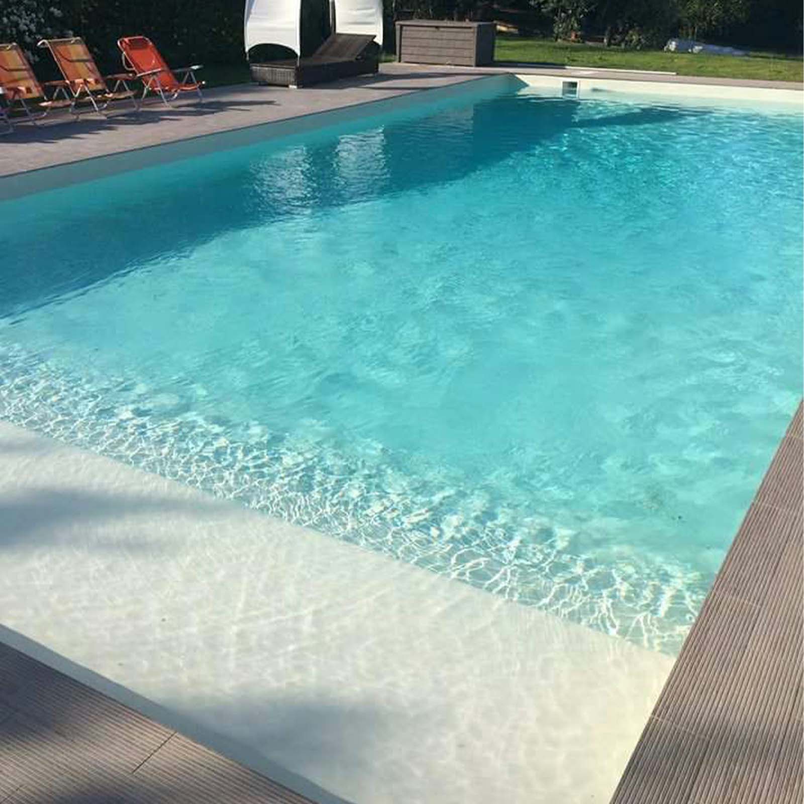 Offre un facile accesso all’acqua e una zona relax, senza sottrarre spazio alla zona di nuoto.
